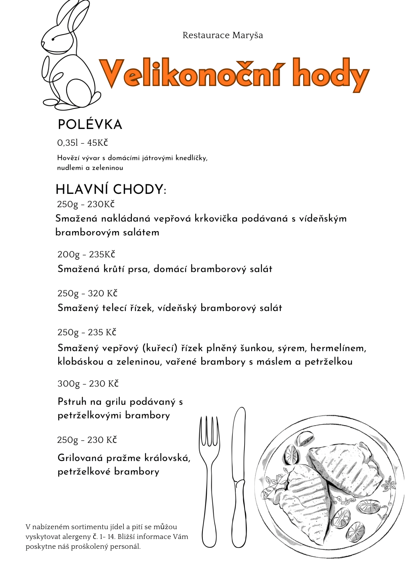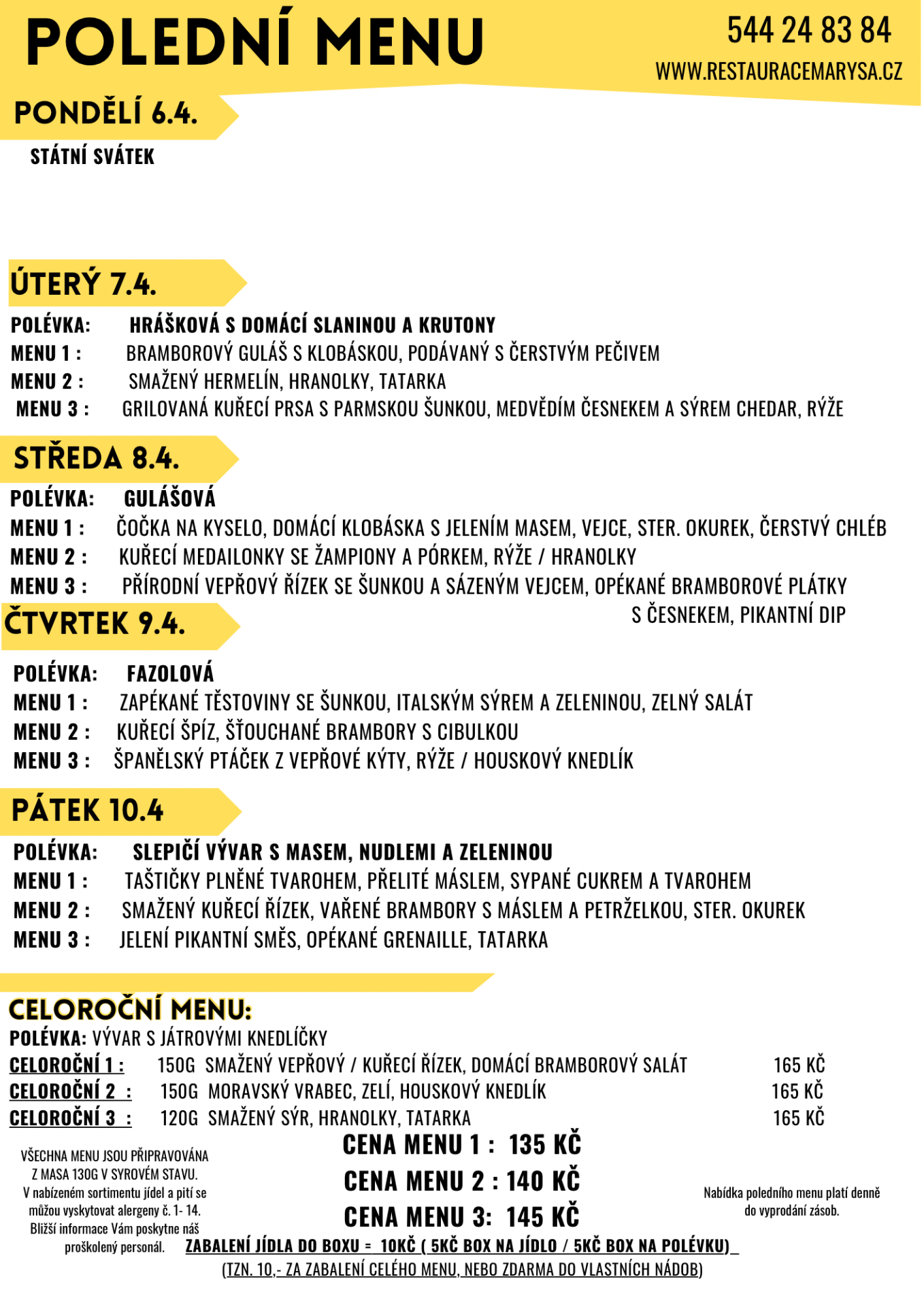 Cena menu je dle aktuálního ceníku menu.