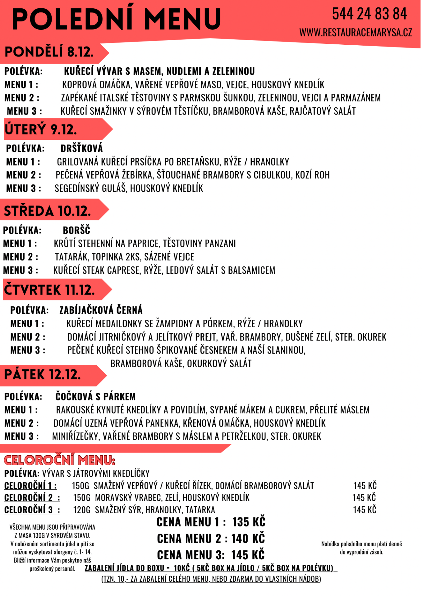 - Všechna menu jsou připravována z masa 130g v syrovém stavu.
